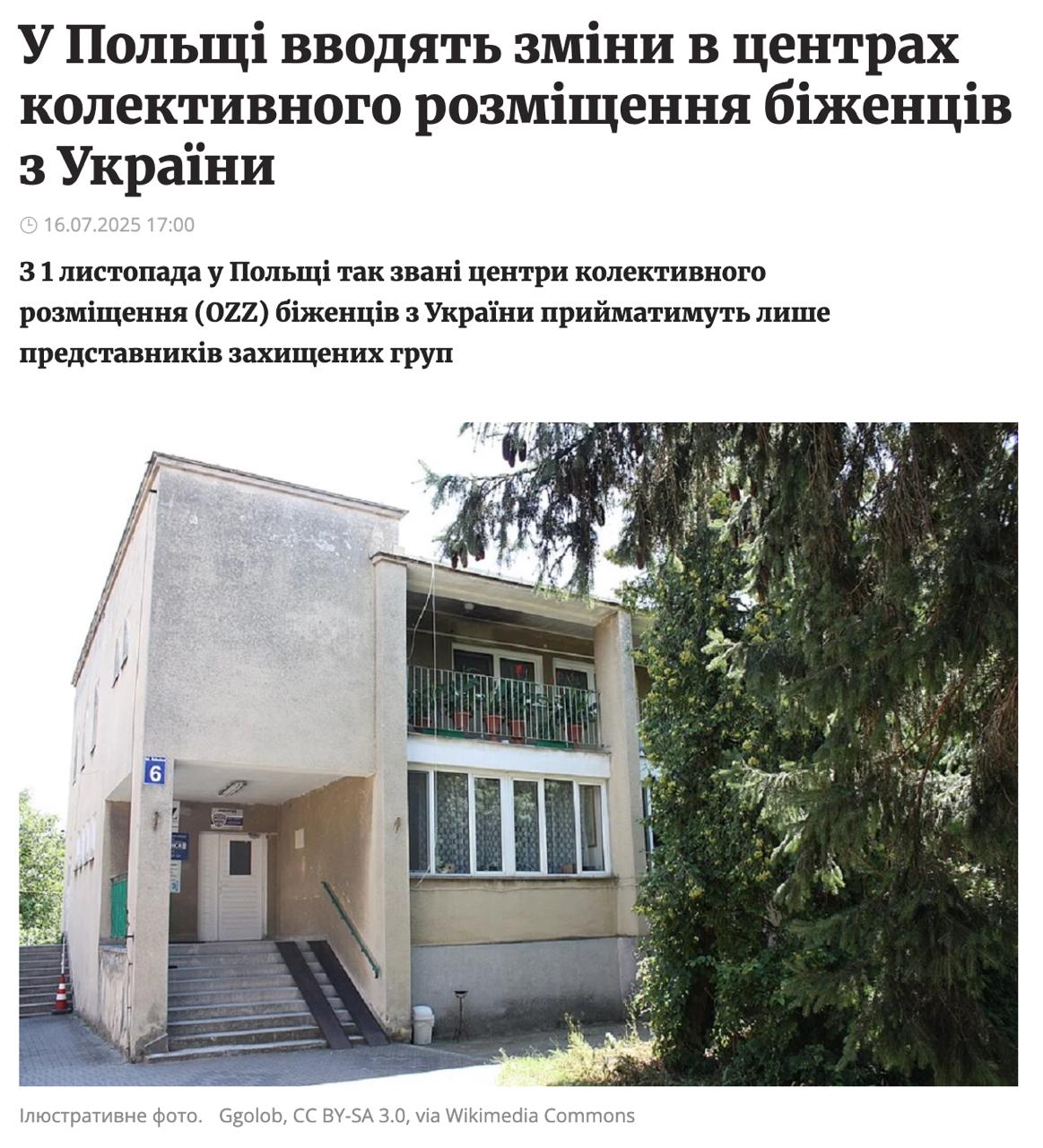 В Польше с 1 ноября центры коллективного размещения (OZZ) будут принимать только украинских беженцев из защищенных групп: пенсионеров, беременных женщин и людей с инвалидностью.