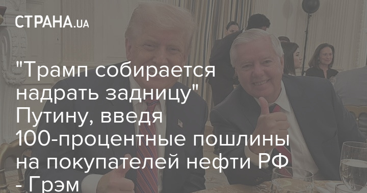 Сенатор США Линдси Грэм заявил, что президент Дональд "Трамп собирается надрать задницу" Владимиру Путину, введя 100-процентные пошлины на покупателей российской нефти - Китай, Индию и Бразилию.