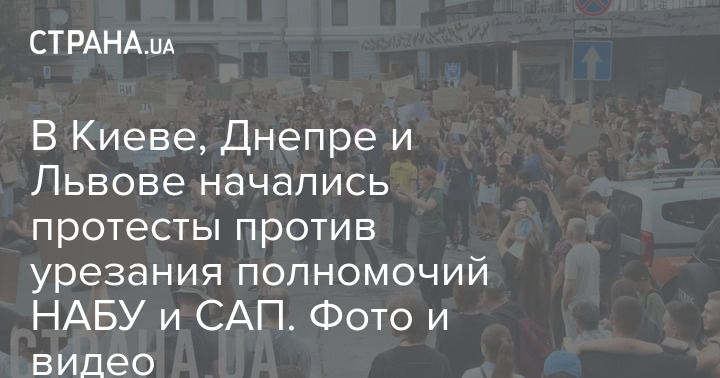 В столице Украины и трёх областных центрах проходят массовые собрания людей, выступающих против закона об ограничении полномочий Национального антикоррупционного бюро и Специальной антикоррупционной прокуратуры, который уже подписал президент Владимир Зеленский.