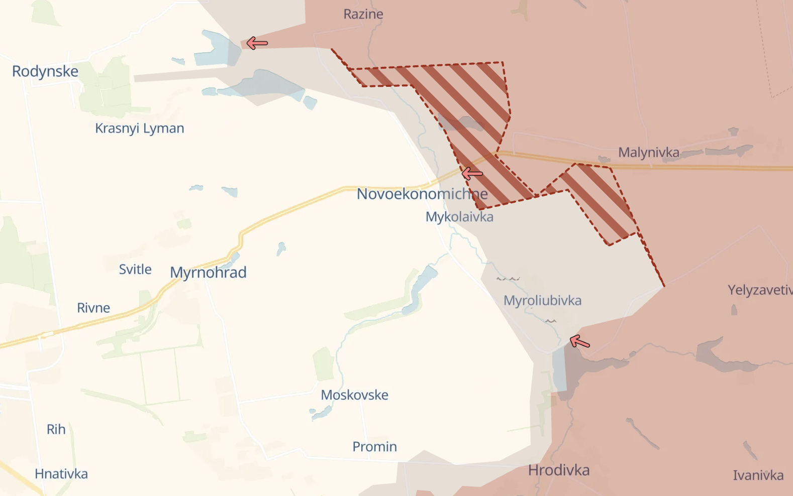 Продвижение было широким фронтом - к северу и югу от трассы на Покровск. Некоторые российские паблики утверждают, что Новоэкономисеское уже полностью захвачено РФ. Украинские источники этого не подтверждали.