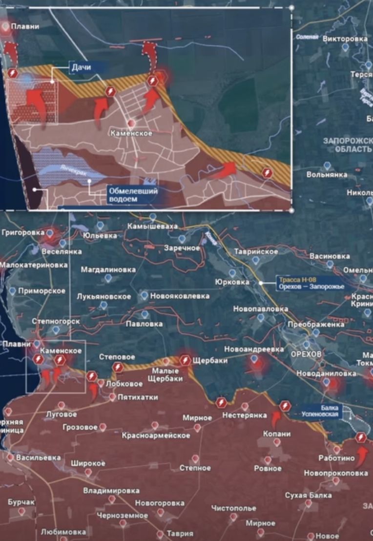 Российские военкоры писали, что между Каменским и Степногорском "серая зона". От Степногорска до Запорожья около 30 километров. То есть город может подвергаться ударам артиллерии и многих видов дронов.