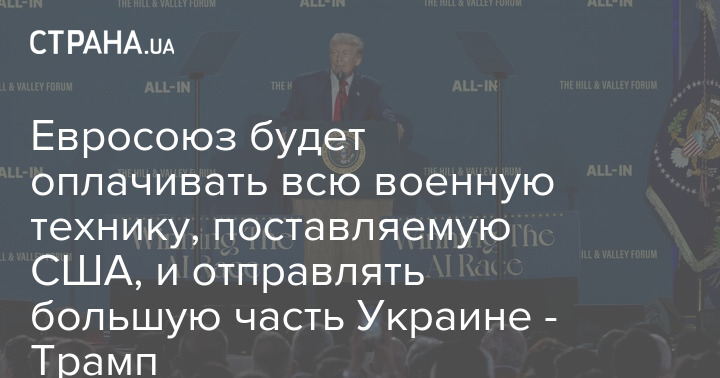 "Мы только что заключили сделку с Европейским союзом, по которой они будут оплачивать 100% стоимости всей военной техники, поставляемой США. Они получат её у нас, затем распределят, и большая часть пойдёт в Украину. Давненько вы не слышали таких слов. Мы вложили $350 миллиардов, но теперь мы отправляем технику в Европу, а Европа платит. Они были просто великолепны", - заявил он.
