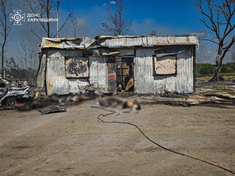13.39 Кадры из Новоплатоновки под Боровой, где после прилета пять человек погибли около магазина. ГСЧС сообщает, что люди собрались, чтобы получить гуманитарную помощь, когда РФ нанесла удар из РСЗО.