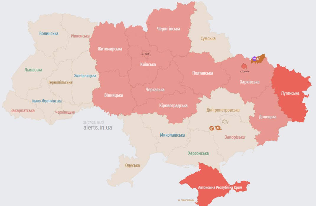 18.43 Тревога в Киеве и ряде областей из-за угрозы баллистики.