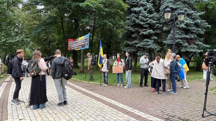Вчера вечером на акцию протеста в поддержку НАБУ под Офисом президента пришли около 10 человек, державших в руках плакаты против президента Владимира Зеленского и главы Офиса Андрея Ермака. К ним подошли другие митингующие и потребовали покинуть мероприятие, обвинив в намерении устроить провокацию.