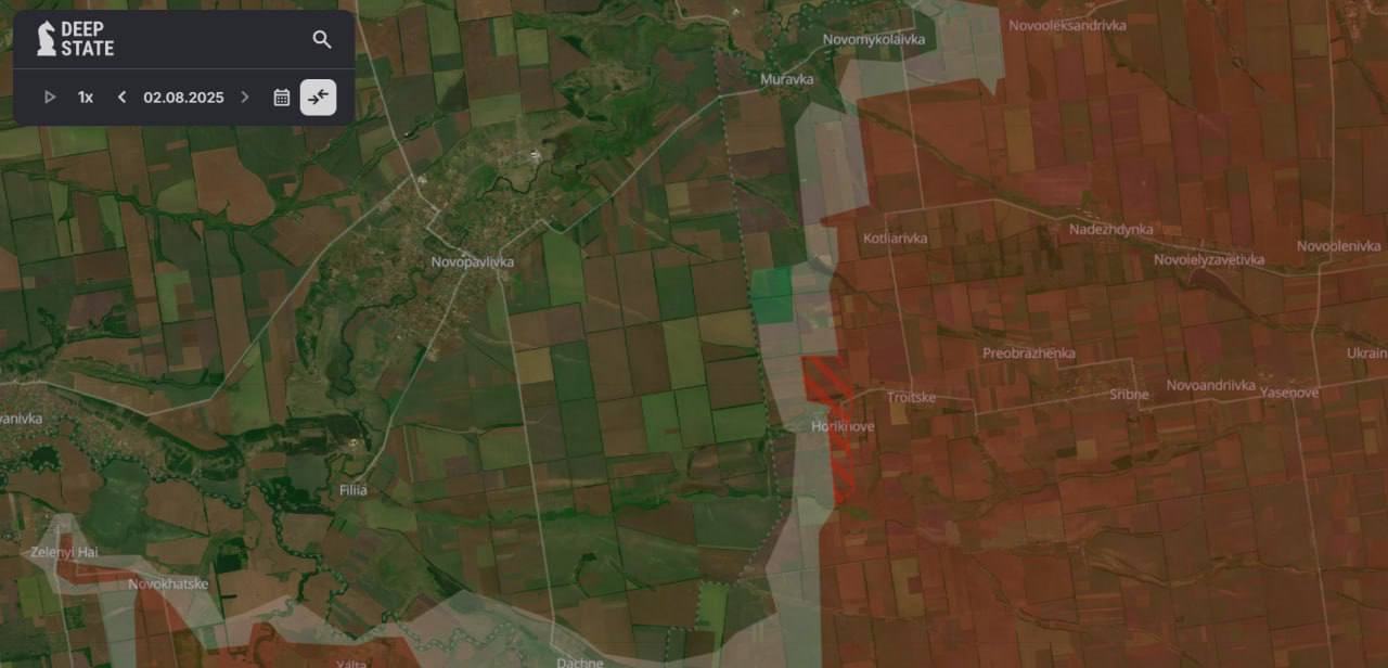 Накануне Deep State сообщил, что российские войска продвинулись в районе Воскресенки и Шевченко у границ Днепропетровской области. Под Торецком россияне заняли позиции в направлении Клебан-Быка под Щербиновкой. По данным военного паблика, за июль войска РФ имели наиболее высокие темпы наступления в Украине с начала 2025 года.