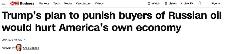 "Если мир в Украине по-прежнему кажется маловероятным, а Трамп реализует свой план, новая дубинка может ударить по экономике самой Америки — из-за более дорогих потребительских товаров, снижения рентабельности американских компаний и, возможно, более высоких цен на нефть", - говорится в статье.