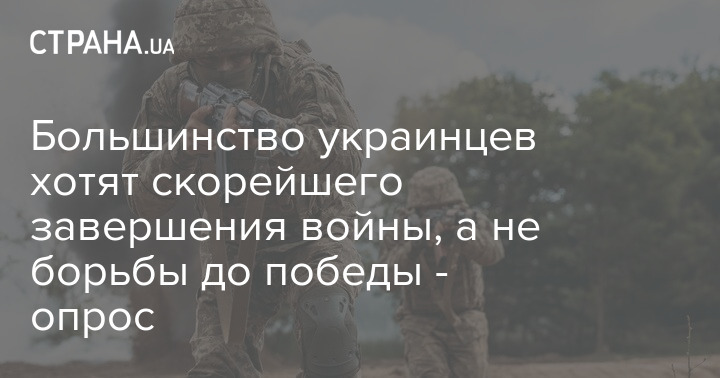 Большинство украинцев хотят скорейшего завершения войны, а не войны до победы. 69% опрошенных жителей Украины выступили за скорейшее прекращение войны путём переговоров.