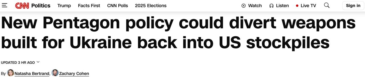 По их данным, Пентагон в прошлом месяце подготовил меморандум, согласно которому может вернуть определенное оружие и технику на миллиарды долларов, предназначенные для Украины в рамках программы "Инициатива по содействию безопасности Украины", обратно на американские склады для пополнения собственных сокращающихся запасов.