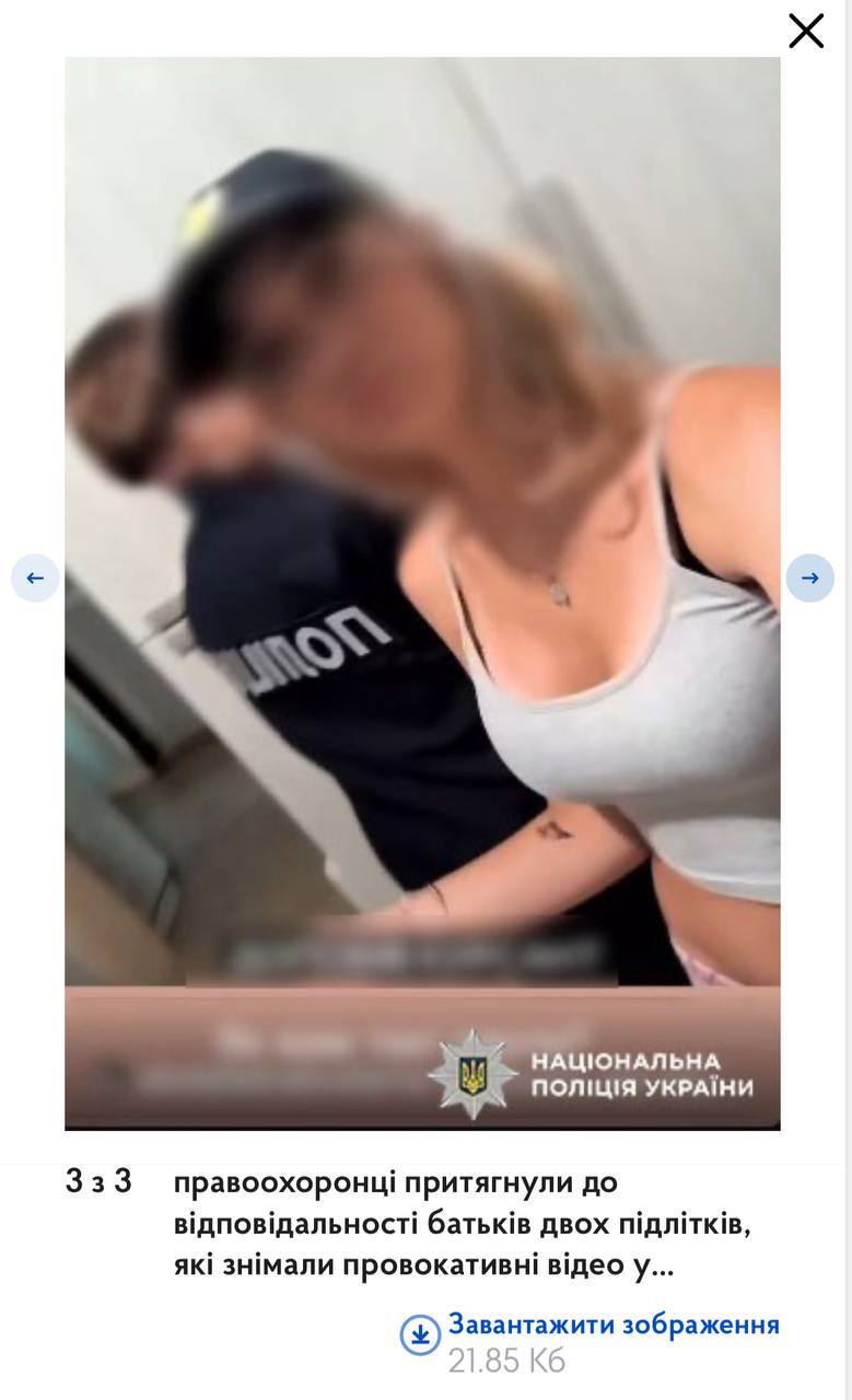 "Ювенальные полицейские провели с несовершеннолетними профилактическую беседу, а на их родителей составили административные материалы по ст. 184 КУпАП — ненадлежащее выполнение родителями своих обязанностей по воспитанию детей, им угрожает штраф", - говорится в сообщении.