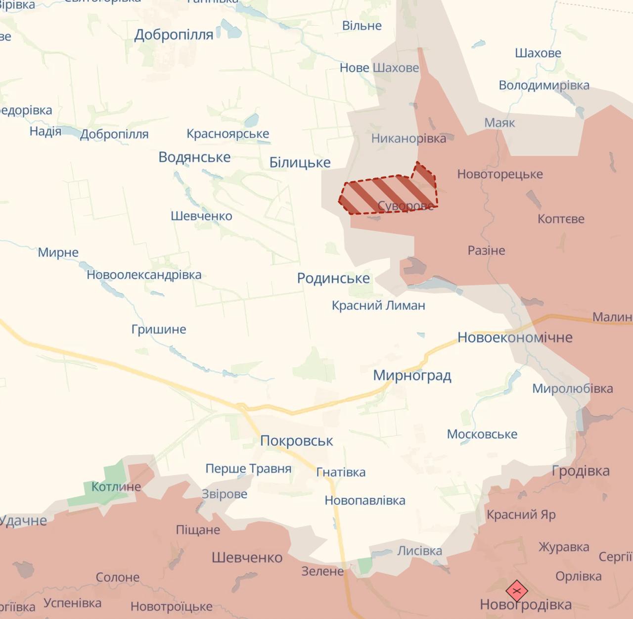 08:54 Российские войска продвинулись к северу от Родинского на Покровском направлении (захвачено село Затишок).