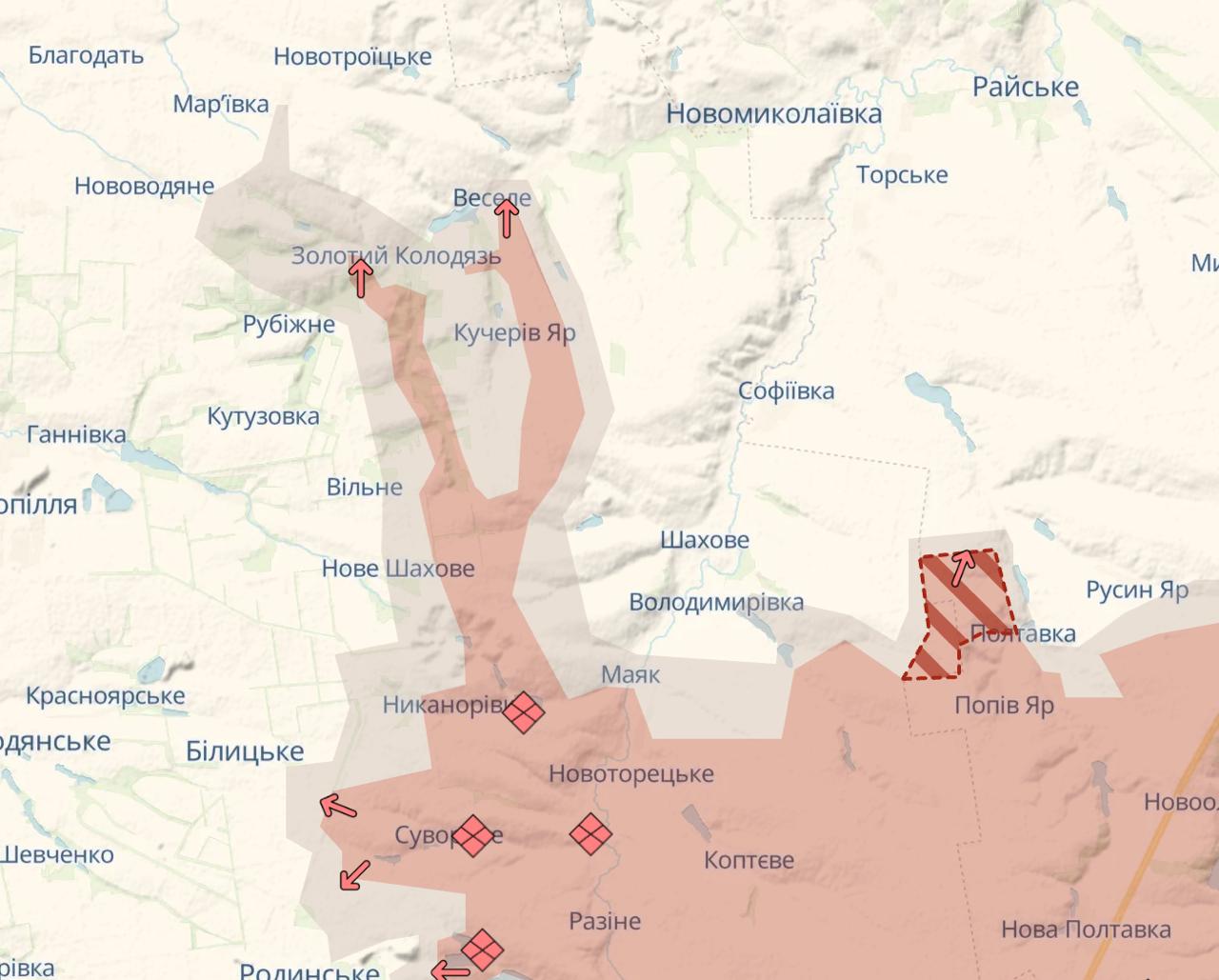 Отметим, что на свежей карте военного ресурса Deep State, отображающей ситуацию по состоянию на вчера, прорыв не уменьшился.