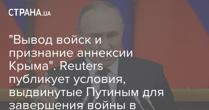 "Вывод войск и признание аннексии Крыма". Reuters публикует условия, выдвинутые Путиным для завершения войны в Украине