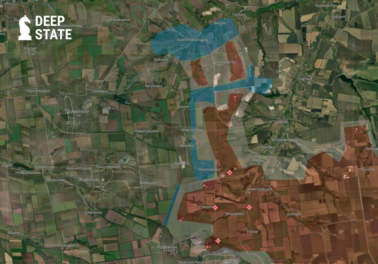 Также российские войска продвинулись на стыке Запорожской и Днепропетровской областей в районе Темировки. Далее - в Днепропетровской области в районе Малиевки.