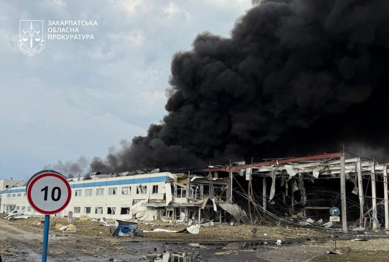 10:12 Еще кадры американского завода Flex в Мукачево, пораженного ночью ракетами.