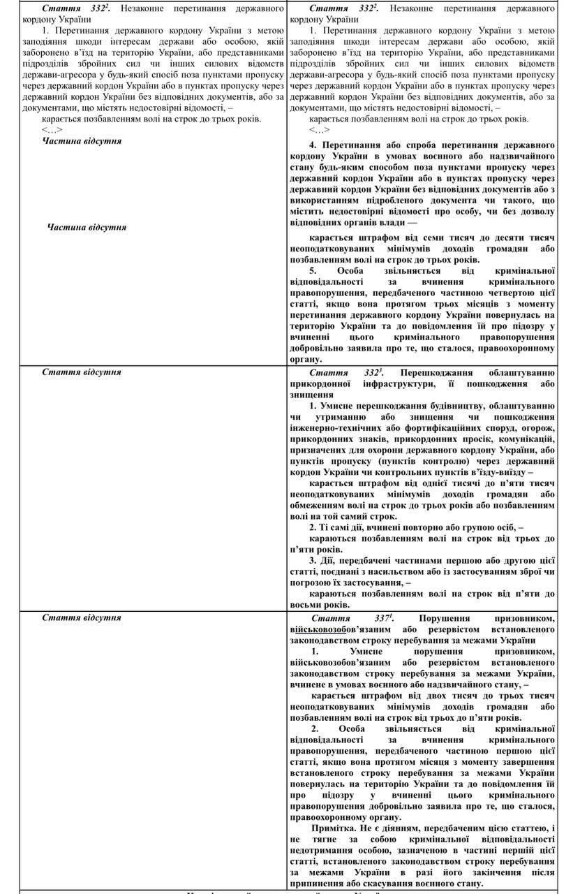 Законопроект премьера предлагает наказывать за незаконное пересечение границы или за попытку незаконного пересечения границы во время военного положения штрафом от 119 до 170 тыс. грн или лишением свободы на срок до трех лет.