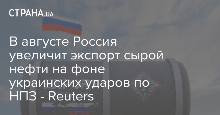 Россия увеличит экспорт сырой нефти на 200 тысяч баррелей в сутки в августе на фоне украинских ударов по нефтеперерабатывающим заводам (НПЗ).