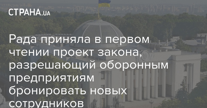 Рада приняла в первом чтении проект закона, разрешающий оборонным предприятиям бронировать новых сотрудников