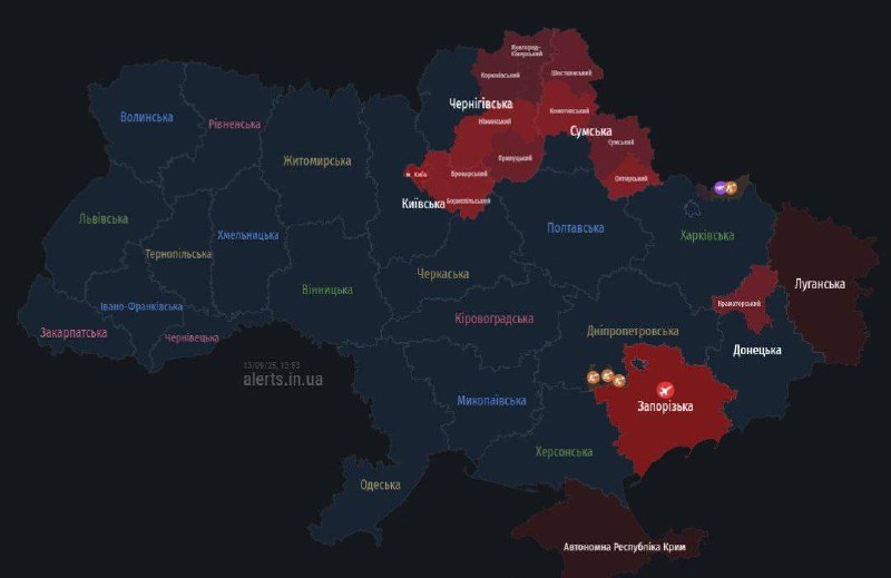 14.04 В Киеве и ряде областей воздушная тревога из-за налета беспилотников. Идет работа ПВО.