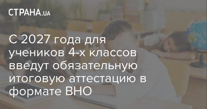 С 2027 года украинские школьники после окончания 4-го класса в обязательном порядке будут проходить государственную итоговую аттестацию (ГИА) в формате внешнего независимого оценивания (ВНО).