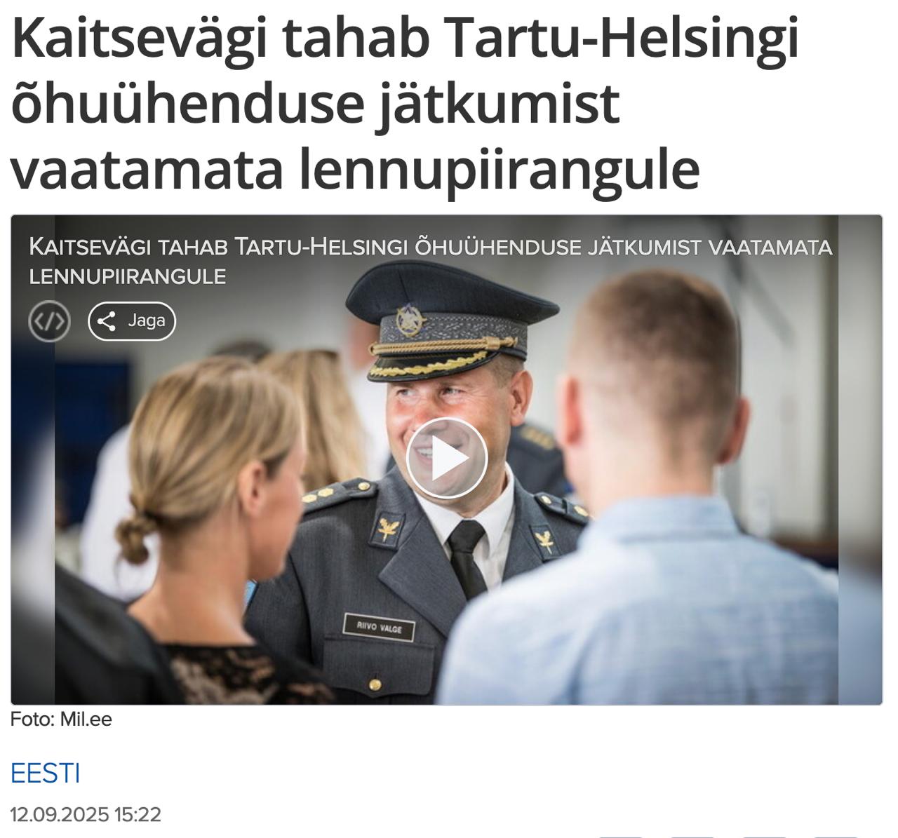По информации издания, уже был отменен рейс Тарту-Хельсинки.