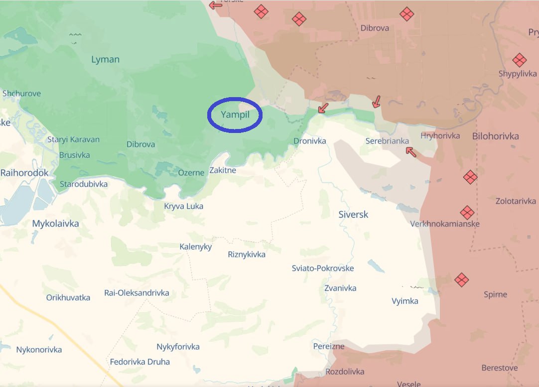Отметим, что взятие Ямполя россиянами перережет основные коммуникации украинских подразделений, которые находятся к востоку от Ямполя и к северу от Северского Донца.