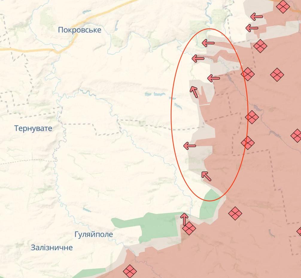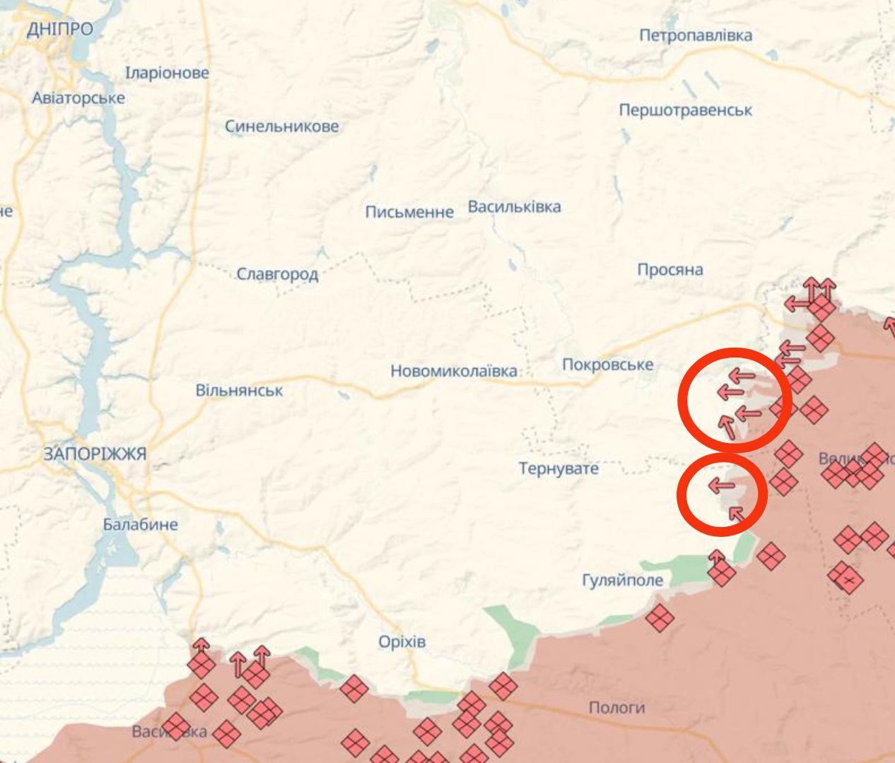 Тем не менее украинские военные паблики фиксируют продвижение РФ на Днепропетровщине. Пусть и не "стремительное", но в ежедневном режиме. Бои идут на двух основных участках.