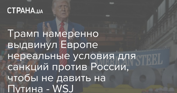 Трамп выдвинул такие требования, зная, что ЕС их не выполнит, что позволило бы избежать усиления экономического давления на Россию, пишет WSJ со ссылкой на неназванные дипломатические источники.