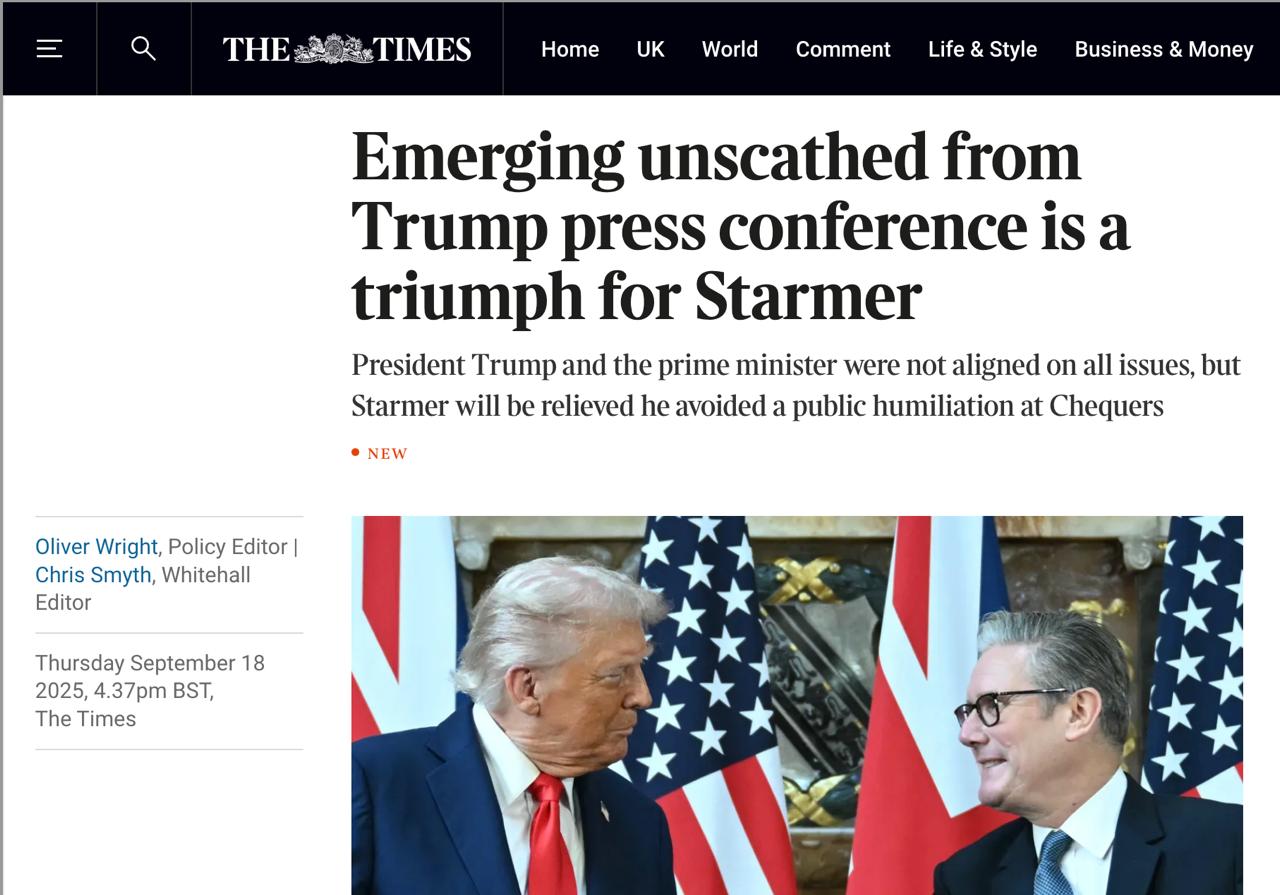 Трамп и Стармер в Лондоне разошлись во взглядах на Украину и другие вопросы - The Times