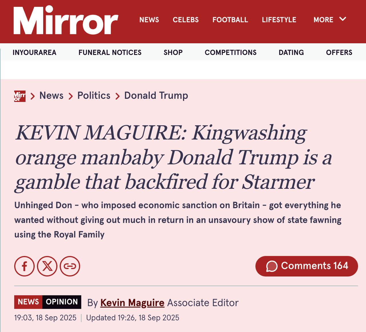 А газета Mirror резко раскритиковала пышный прием, оказанный Трампу.