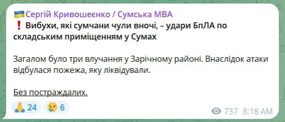 14:36 В Сумах возник сильный пожар после налета дронов.