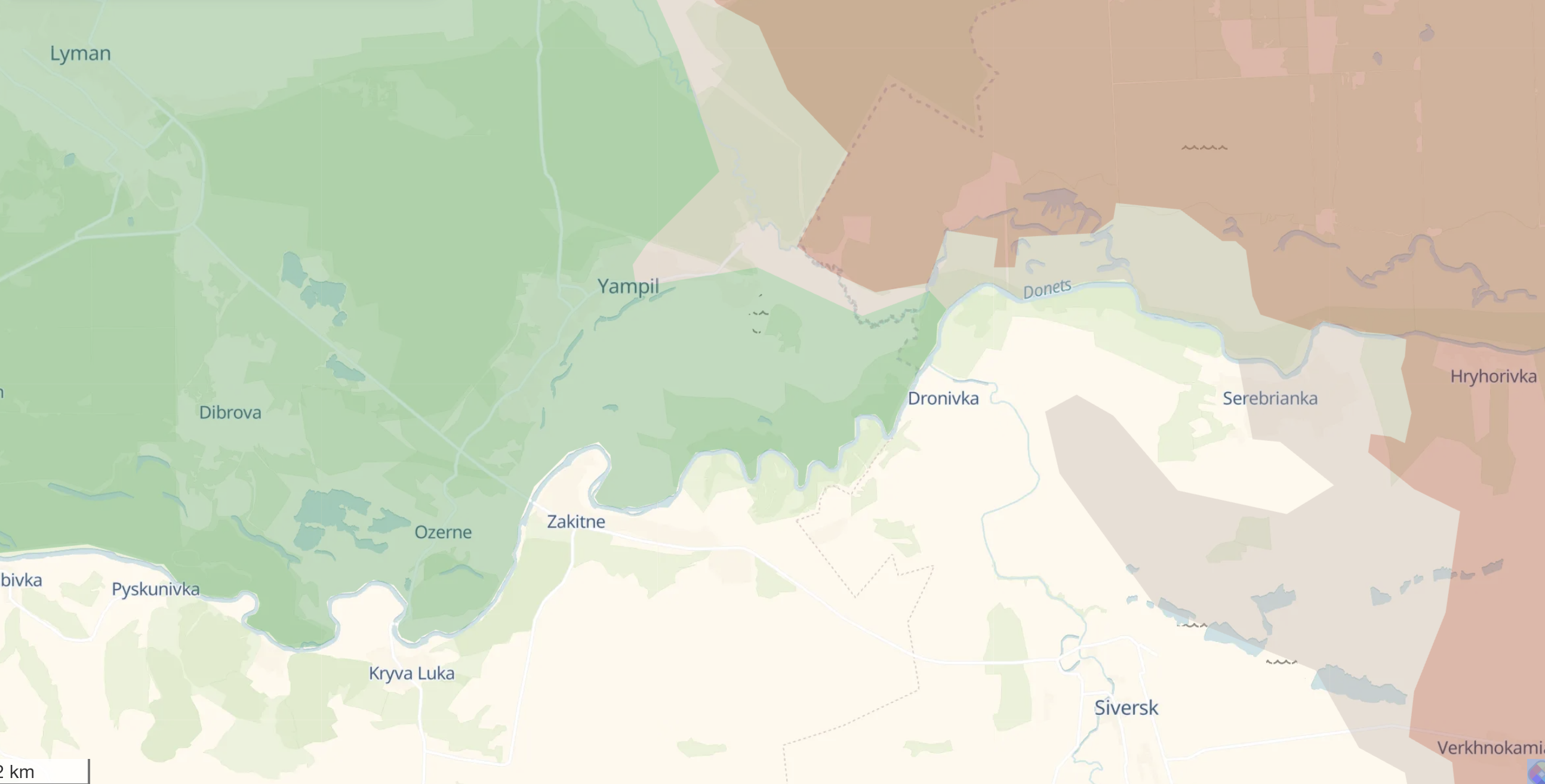 "Противник постепенно вытесняет наши силы, заставляя отступать с части позиций. Почти весь Серебрянский лес уже под их контролем, в серой зоне остаются только западная его часть и прилегающая ферма. Также продолжается борьба за район к северо-востоку от Ямполя, где враг пытается закрепиться и расширить плацдарм", – написал он.