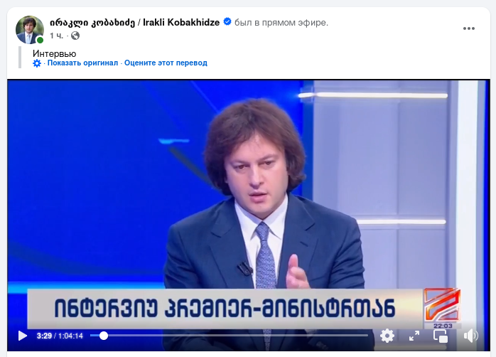 Об этом заявил премьер-министр Ираклий Кобахидзе в эфире телеканала "Рустави-2".