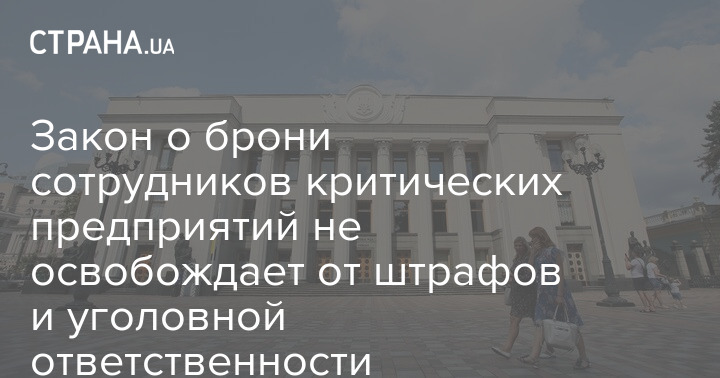 Принятый Верховной Радой законопроект №13335 о бронировании от мобилизации сотрудников критически важных предприятий, у которых есть проблемы с учетными документами, не освобождает их от штрафов и угрозы уголовной ответственности.