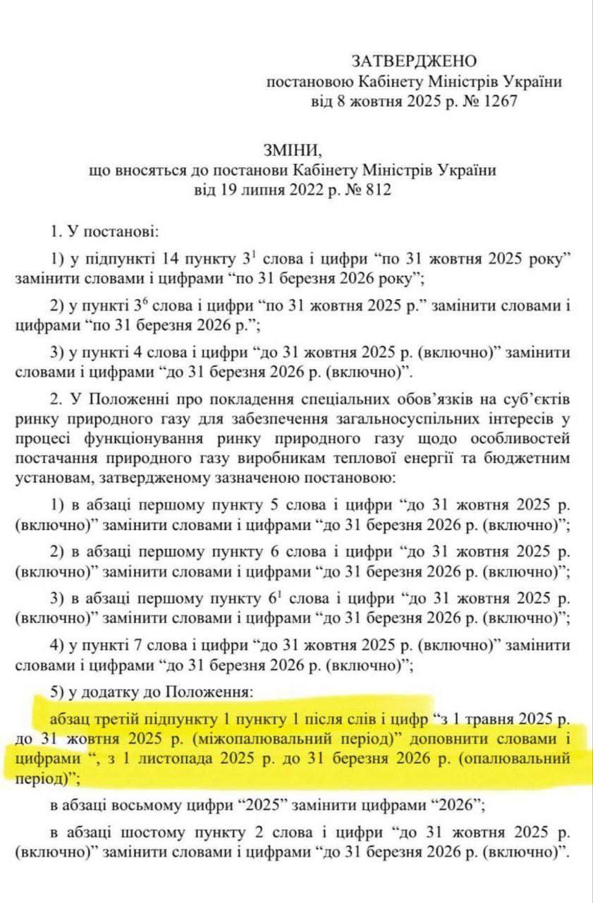 Также постановление продлевает действие механизмов специальных обязанностей (ПСО) для поставщиков природного газа — они останутся в силе до конца нового отопительного сезона, то есть до 31 марта 2026 года.