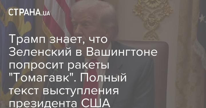 Трамп знает, что Зеленский в Вашингтоне попросит ракеты "Томагавк". Полный текст выступления президента США