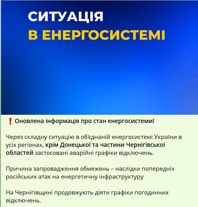 При этом в Черниговской области действуют плановые графики отключений.