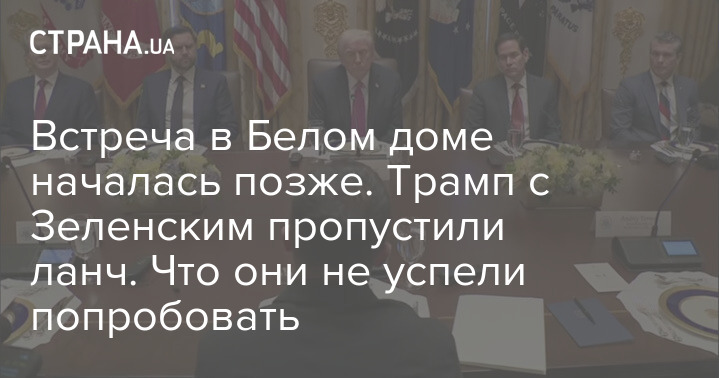 Встреча президента США Дональда Трампа с президентом Украины Владимиром Зеленским длилась больше запланированного, поэтому обед в Белом доме прошёл без них.