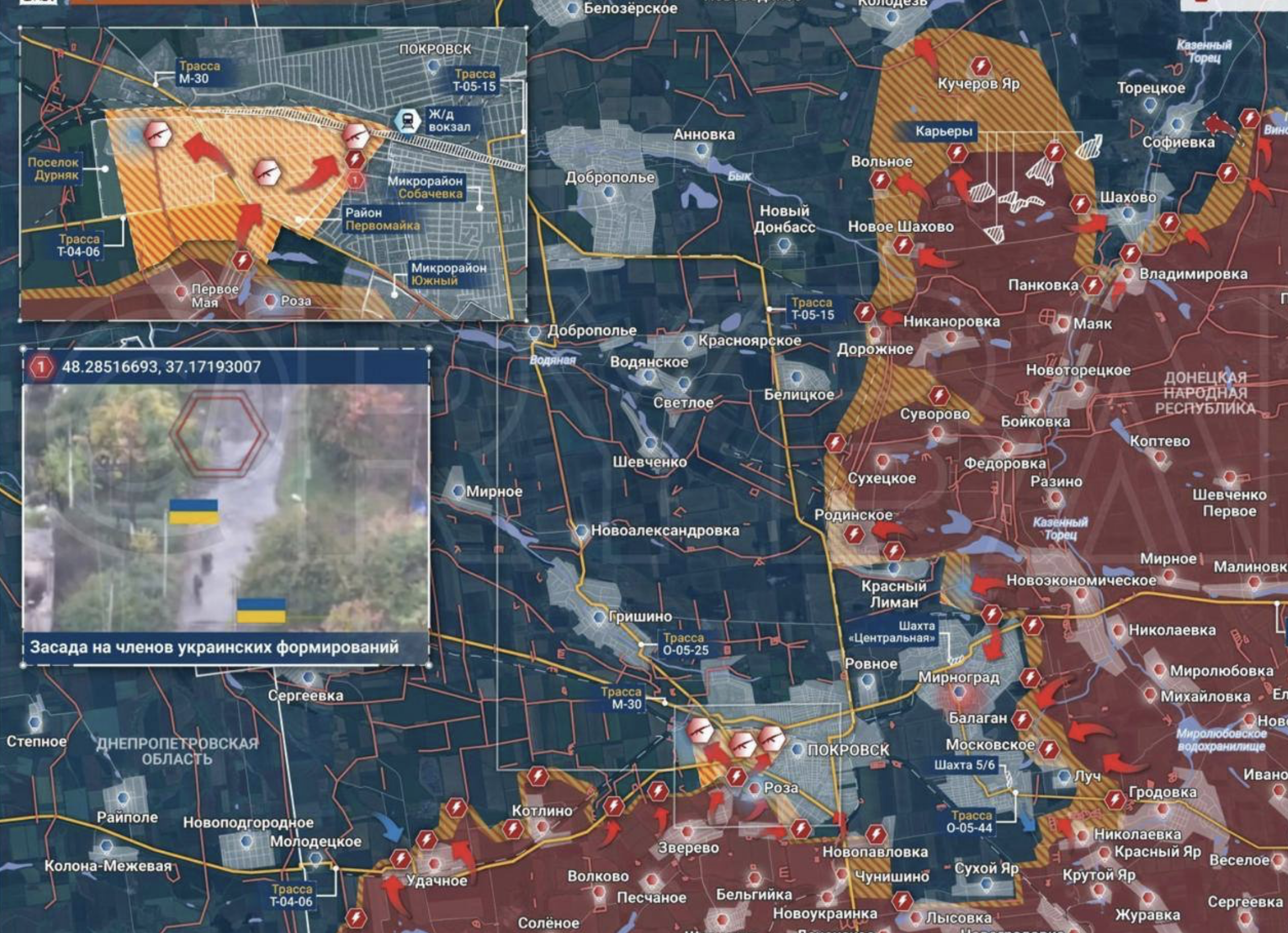 Судя по сведениям военных пабликов, ключевые атаки сейчас разворачиваются вокруг промзоны на северо-западе Покровска. "Если этот объект падёт - город фактически утратит свой стержень, превратится в обломок, по которому будет трудно даже передвигаться", - пишет "Мучной".