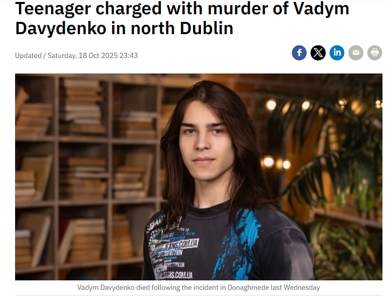 В Дублине 17-летнего украинского подростка Вадима Давыденко убил его ровесник из Сомали.
