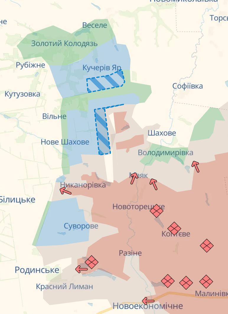 В свою очередь армия РФ продвинулась к юго-востоку от Купянска, а также под Покровском.