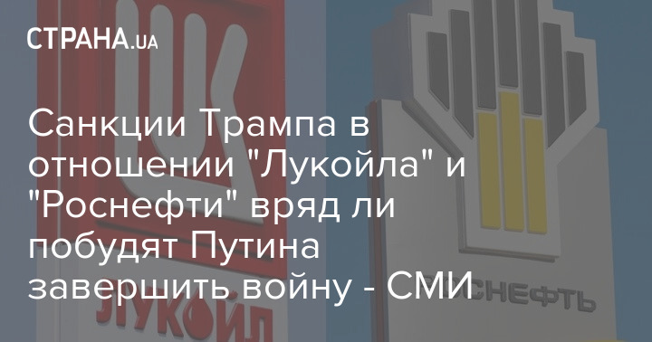 Санкции президента США Дональда Трампа в отношении "Лукойла" и "Роснефти" сократят доходы РФ, но не в несколько раз, и вряд ли побудят Владимира Путина завершить войну.