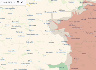 К северо-западу от города границы "серой зоны" образуют горловину менее чем в три километра, согласно карте Deep State, и ещё уже, если речь о российских картах. При этом на свободном участке не содержится каких-либо значимых дорог - ближайшая, на Павлоград, уже перерезана россиянами.