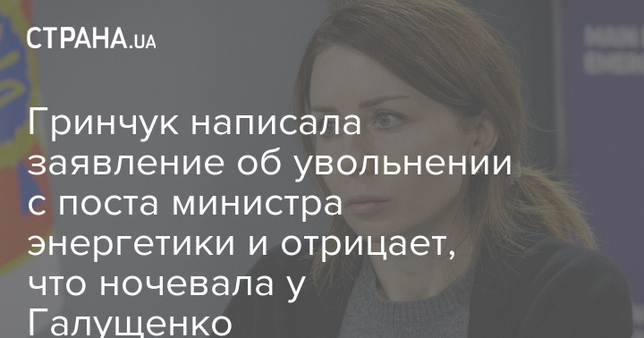 Гринчук написала заявление об увольнении с поста министра энергетики и отрицает, что ночевала у Галущенко