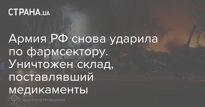 Вчерашняя ракетная атака на Днепр уничтожила второй за месяц склад фармацевтической продукции компании "Оптима-Фарм".