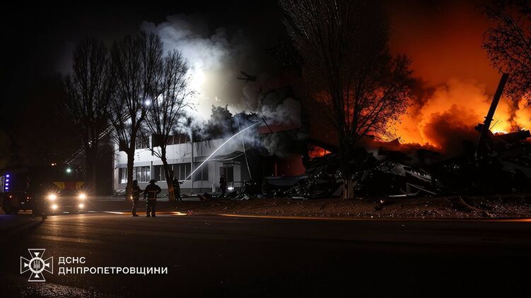 Ликвидация пожара на складе фармдистрибьютора после атаки РФ . Фото: ГСЧС Днепропетровщины