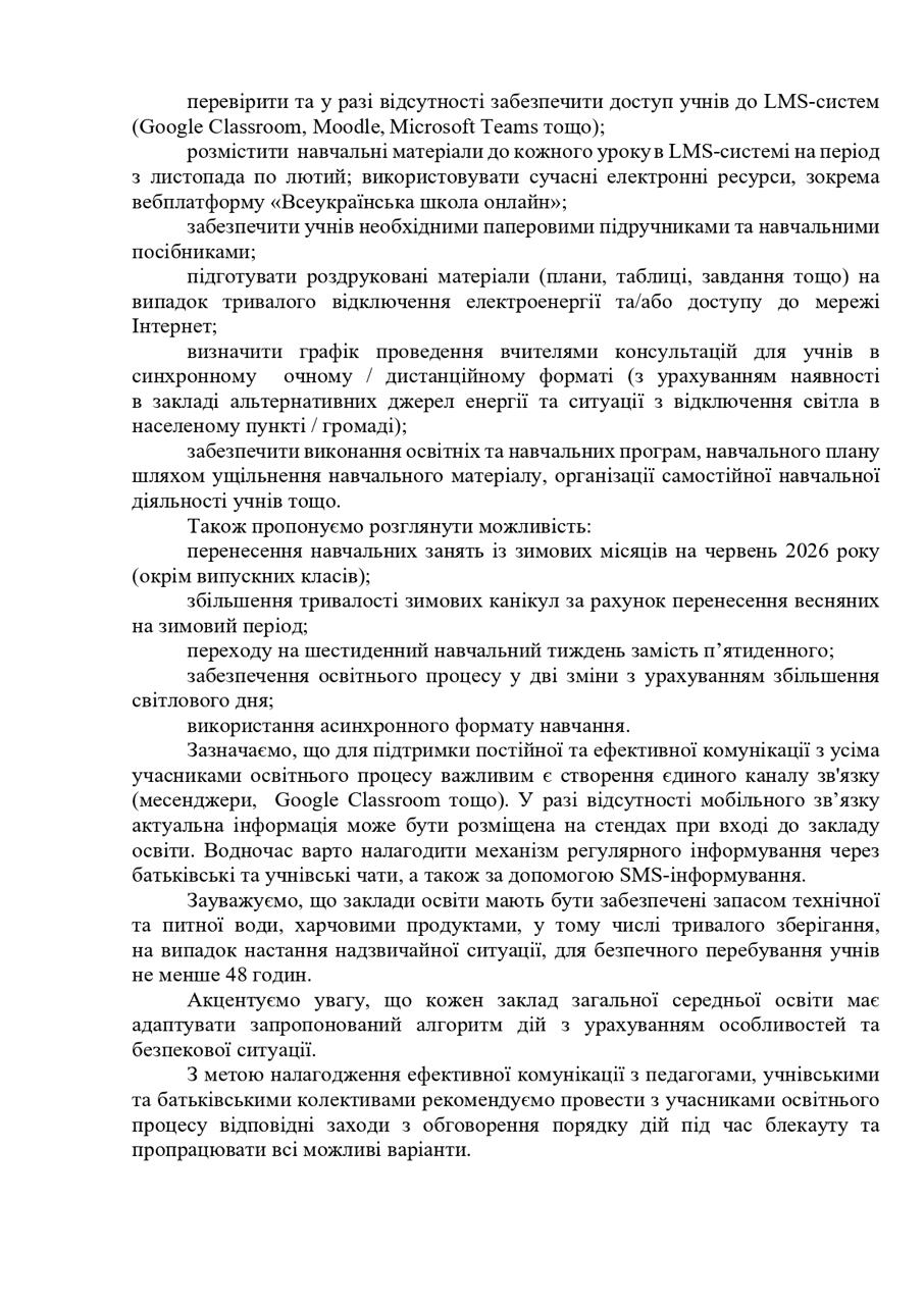 Также рекомендуется провести обсуждения порядка действий при блэкауте и обеспечить психологическую поддержку учащихся и педагогов в условиях стресса и неопределенности.