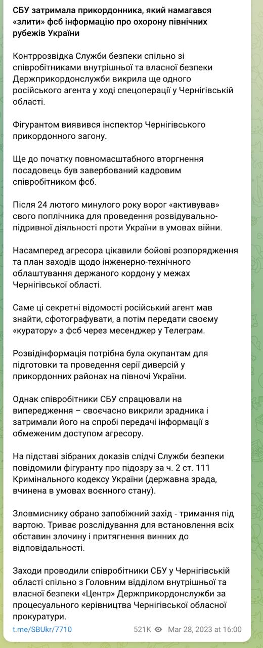 В Чернигове два сотрудника СБУ фальсифицировали дело о государственной измене пограничника