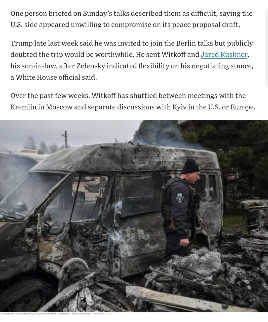 9.04 США на переговорах с Зеленским в Берлине не идут на компромисс по своему проекту мирного соглашения.