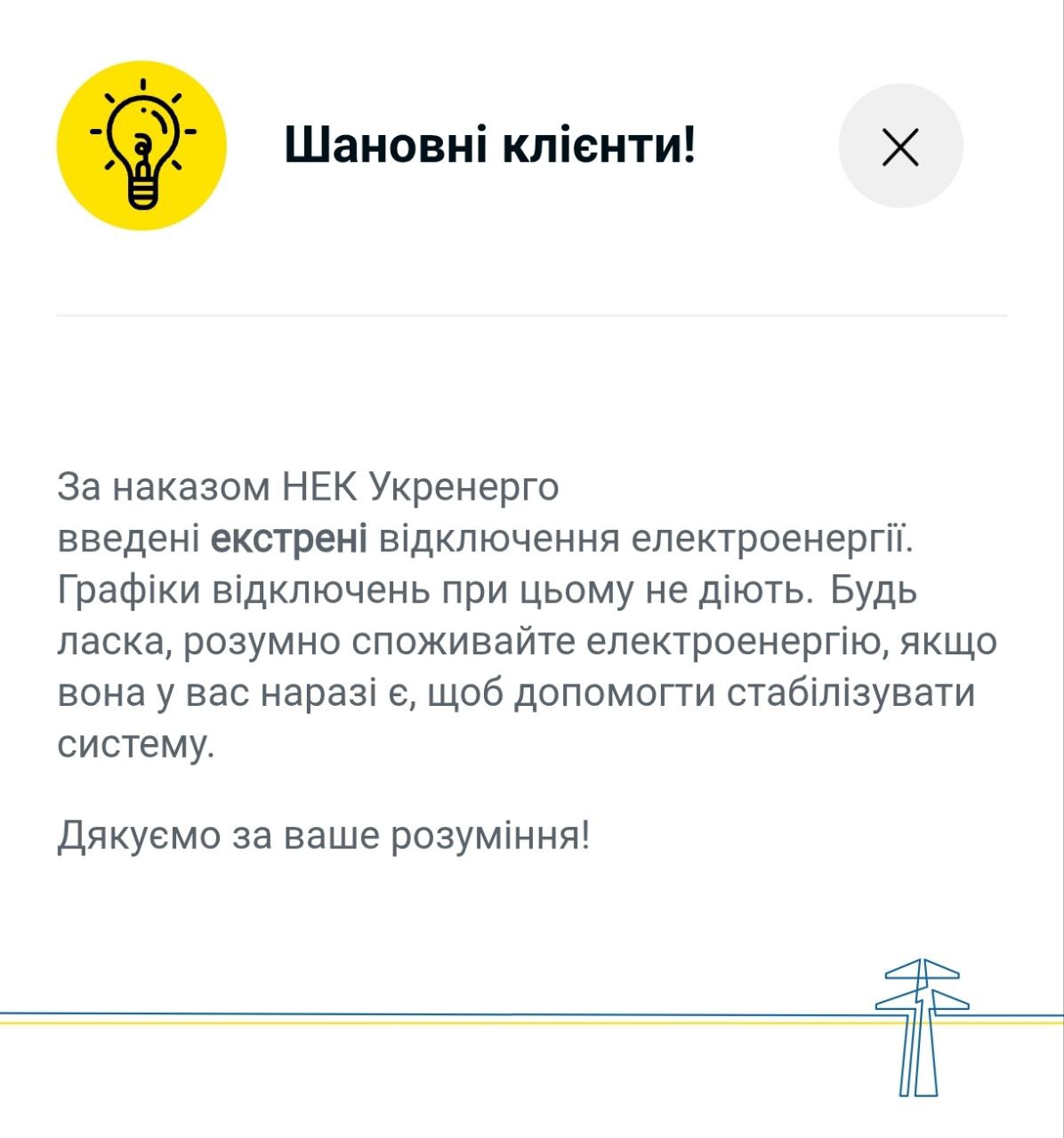 8:55 В Киеве ввели экстренные отключения света, графики не действуют, сообщили в ДТЭК.
